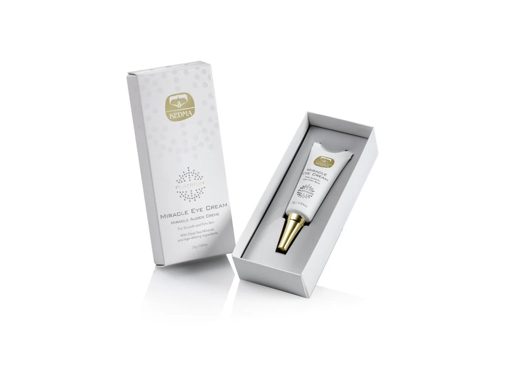 Mit sofortigen Ergebnissen verwandelt die Creme geschwollene und faltige Haut unter den Augen in straffe, pralle und glatte Haut. Die innovative Formel ist angereichert mit jugendlichem Elastin, Kollagen, Peptiden und Hyaluronsäure, die in perfekter Harmonie zusammenwirken, um die Haut zu nähren und mit Feuchtigkeit zu versorgen und sie gesund, vital und strahlend aussehen zu lassen. Elastin hält die Haut glatt, geschmeidig und elastisch, Kollagen hilft, die Haut mit Feuchtigkeit zu versorgen, indem es den Wasserverlust reduziert, Peptide verleihen der Haut ihre Fülle und Elastizität, und Hyaluronsäure speichert Feuchtigkeit und schützt die Haut vor schädlichen Radikalen. Ginsengwurzel-Extrakt, auch bekannt als „Wunder der Schönheit“, bringt die Haut wieder ins Gleichgewicht und spendet ihr Feuchtigkeit. Die Creme ist angereichert mit verjüngendem Wasser aus dem Toten Meer, beruhigendem Grünteeblatt-Extrakt, Vitamin E und erfrischendem und energetisierendem Ingwer, um ein hohes Maß an Hauthygiene zu gewährleisten.